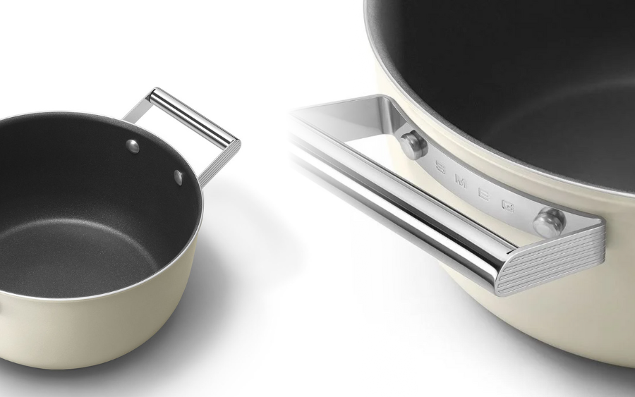 Thuộc bộ sưu tập dụng cụ nấu nướng mang phong cách thập niên 50 đặc trưng của SMEG, nồi CKFC sở hữu vẻ đẹp giao thoa giữa cổ điển tinh tế và hiện đại sang trọng. Đường nét bo tròn mềm mại, thân nồi vững chắc, gam màu thanh lịch cùng tay cầm thép không gỉ bóng mịn tạo nên một tổng thể hài hòa như một tác phẩm décor thu nhỏ trong gian bếp. Mỗi chi tiết đều được trau chuốt tỉ mỉ theo đúng tinh thần thiết kế Ý: giản đơn nhưng đầy cảm xúc, trang nhã nhưng không phô trương.