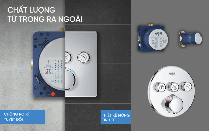 Hộp kỹ thuật GROHE Rapido SmartBox âm tường với công nghệ chống rò rỉ tuyệt đối, mang lại sự yên tâm dài lâu.