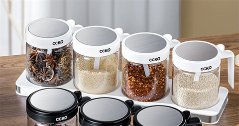 Set 4 lọ đựng gia vị thủy tinh cao cấp CCKO CK9984 màu trắng