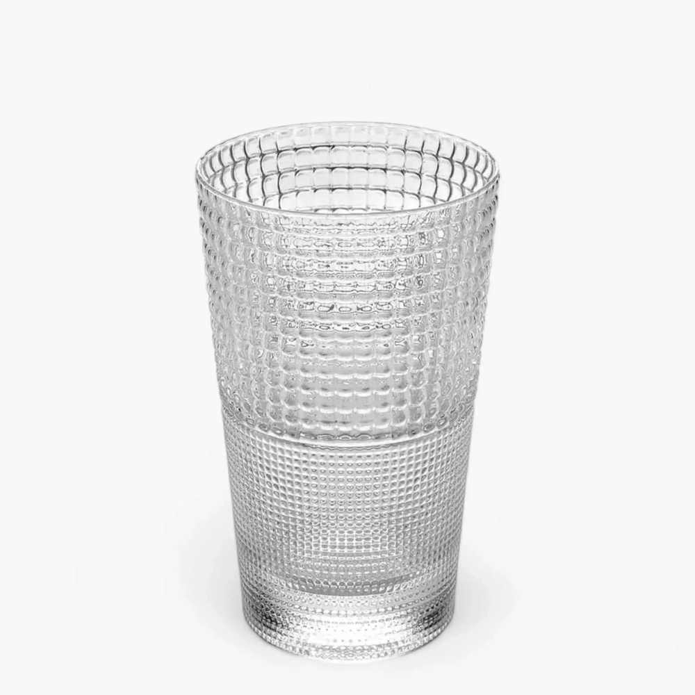 Điểm nhấn đặc trưng của bộ sưu tập Speedy chính là các họa tiết lồi nổi như những thấu kính nhỏ bao phủ bề mặt cốc. Thiết kế này tạo nên hiệu ứng khúc xạ ánh sáng đặc biệt, khiến chiếc cốc trở nên lấp lánh, mờ ảo và có chiều sâu thị giác rõ rệt.