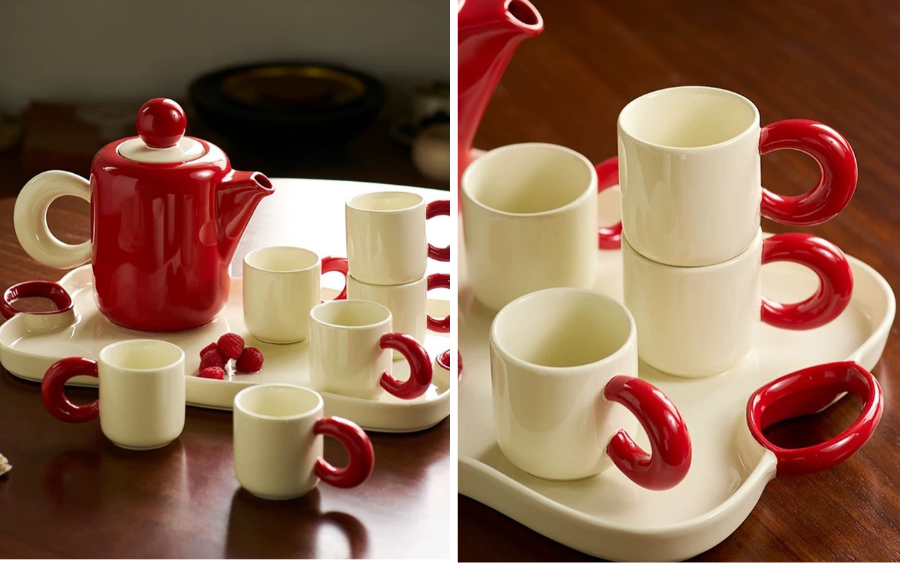 Khay đi kèm giúp sắp xếp gọn gàng, dễ dàng di chuyển và biến set sản phẩm trở thành vật trang trí bàn ăn, bàn trà hoặc bàn tiếp khách cực kỳ nổi bật. Chỉ cần đặt lên bàn, set Dopamine đỏ này đã đủ để tạo điểm nhấn ấn tượng cho cả không gian.