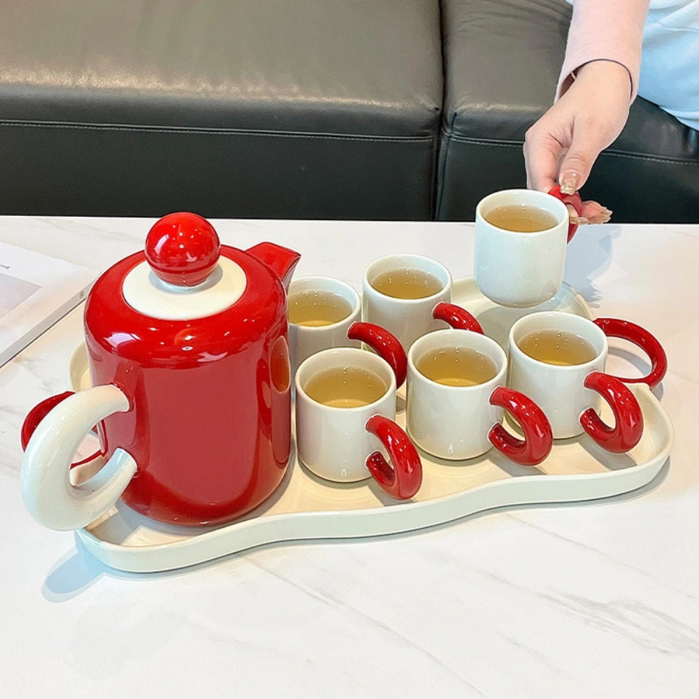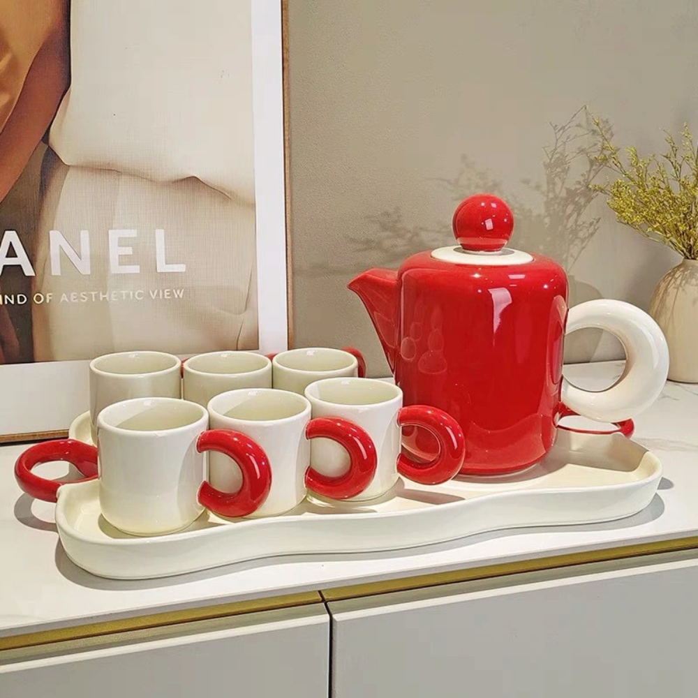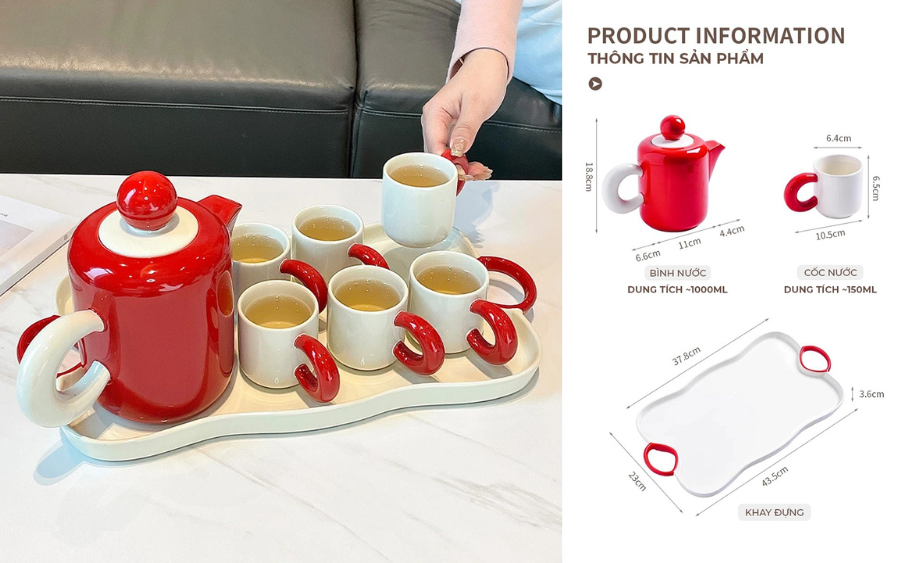 Kế thừa tinh thần đó, set Bình nước + 6 cốc kèm khay Dopamine phong cách Bắc Âu màu đỏ là lựa chọn hoàn hảo cho những ai yêu thích sự khác biệt và năng lượng tích cực. Từ sắc đỏ nổi bật, chất liệu sứ cao cấp đến thiết kế đồng bộ giữa bình nước, cốc và khay, bộ sản phẩm không chỉ phục vụ nhu cầu thưởng thức đồ uống mà còn trở thành điểm nhấn trang trí tinh tế cho bàn ăn, bàn trà hay những buổi gặp gỡ thân mật.