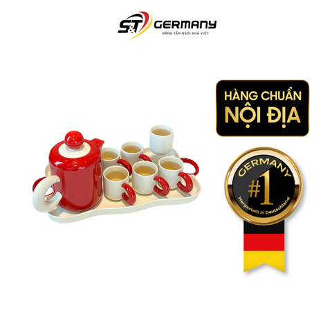 Mang tinh thần Dopamine rực rỡ kết hợp cùng phong cách Bắc Âu tối giản, set bình nước + 6 cốc sứ kèm khay là điểm nhấn hoàn hảo cho mọi không gian sống hiện đại. Không chỉ đơn thuần là bộ dụng cụ phục vụ đồ uống, sản phẩm còn mang đến cảm giác vui tươi, ấm áp và đầy cảm hứng mỗi khi sử dụng từ bữa sáng nhẹ nhàng, buổi trà chiều thư giãn đến những buổi tiếp khách thân mật. Sự kết hợp hài hòa giữa màu đỏ nổi bật, chất liệu sứ cao cấp và thiết kế tinh tế giúp bộ sản phẩm vừa đẹp mắt vừa tiện dụng trong đời sống hằng ngày. Hãy cùng Germany S&T xem điều thú vị của bộ sản phẩm này nhé!