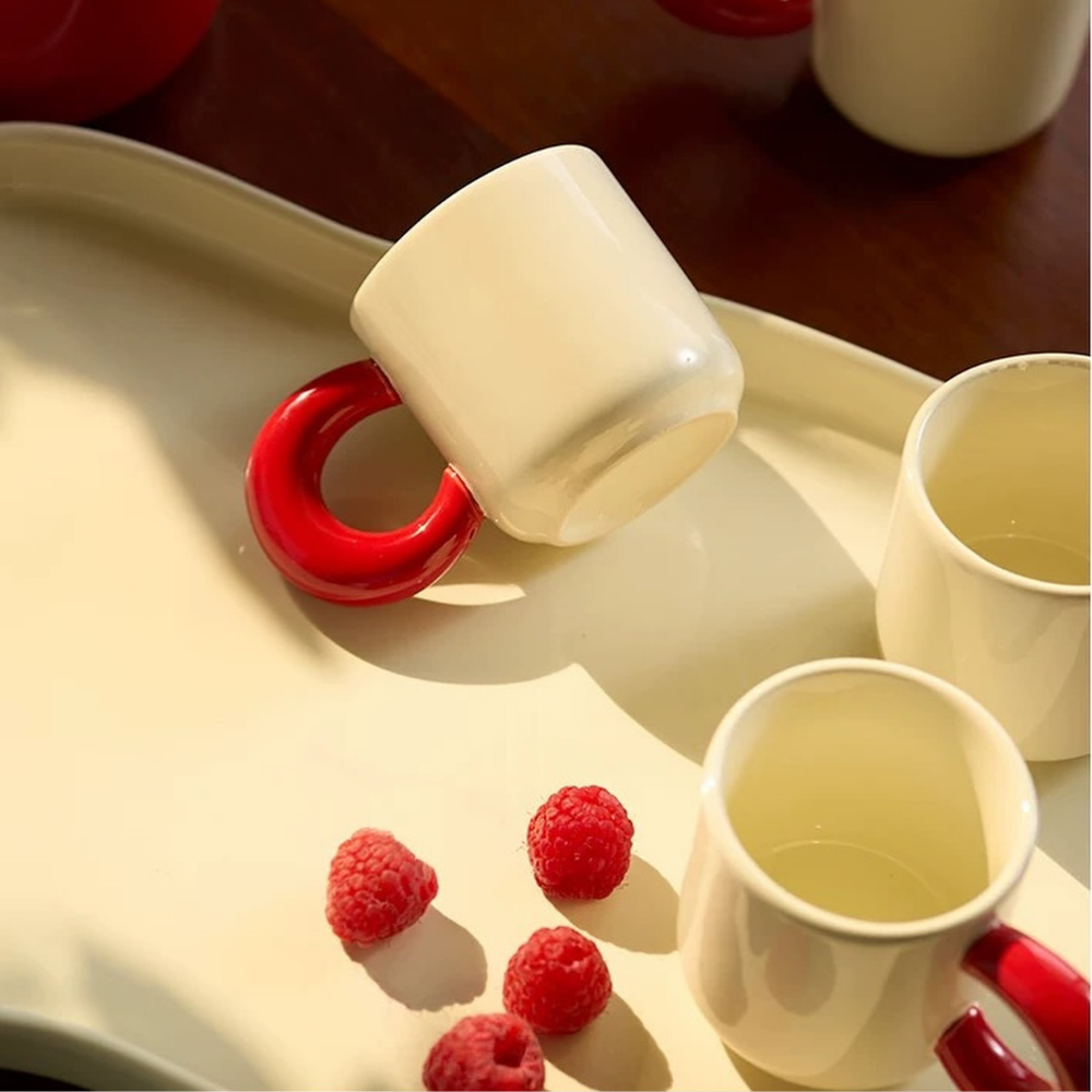 Mang tinh thần Dopamine decor rực rỡ kết hợp phong cách Bắc Âu tối giản, set bình nước và 6 cốc sứ kèm khay màu đỏ không chỉ là bộ đồ dùng uống nước thông thường mà còn là món đồ gia dụng gia đình tạo cảm xúc tích cực mỗi ngày. Gam màu đỏ nổi bật, trẻ trung giúp không gian bàn ăn, bàn trà hay góc tiếp khách trở nên sinh động, tràn đầy năng lượng và cuốn hút ánh nhìn.