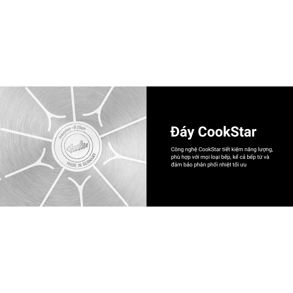 Bên cạnh chất liệu tái chế đặc biệt, một điểm nhấn nổi bật khác của set chảo Fissler Adamant nằm ở phần đáy được thiết kế với công nghệ Cookstar độc quyền.
