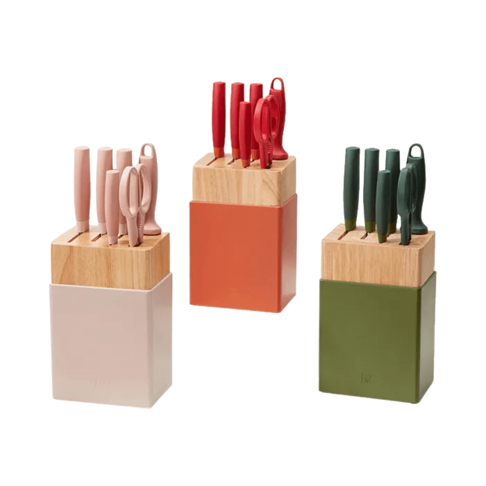 Bộ dao ZWILLING Now S 6 món là một trong những dòng nổi bật của hãng, kết hợp chất thép trứ danh với bảng màu trẻ trung, mang đến sự tiện dụng và thẩm mỹ cho mọi căn bếp.