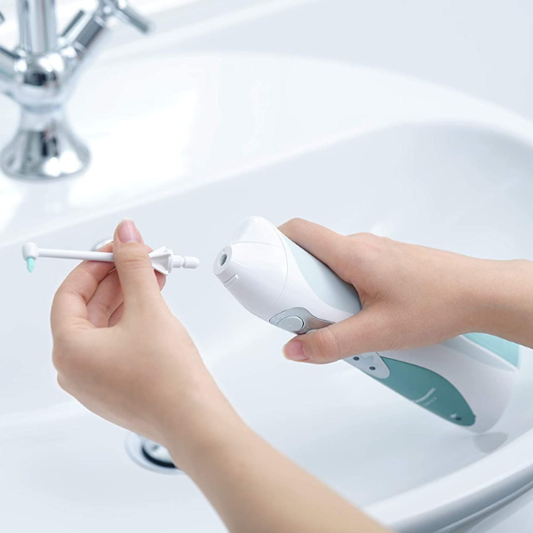 | Phụ kiện | 1 đầu tăm nước tiêu chuẩn, 1 đầu tăm chỉnh nha, đế sạc với giá cắm 2 đầu tăm |