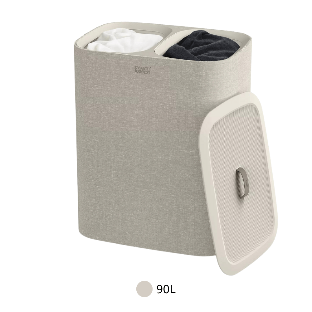Thùng chứa đồ giặt Joseph Joseph Tota được thiết kế với hai ngăn riêng biệt, giúp người dùng dễ dàng phân loại quần áo sáng – tối hoặc theo chất liệu vải ngay trong quá trình sử dụng. Việc phân loại sẵn này giúp tiết kiệm thời gian trước mỗi lần giặt, đồng thời hạn chế tình trạng phai màu hay giặt nhầm vải.