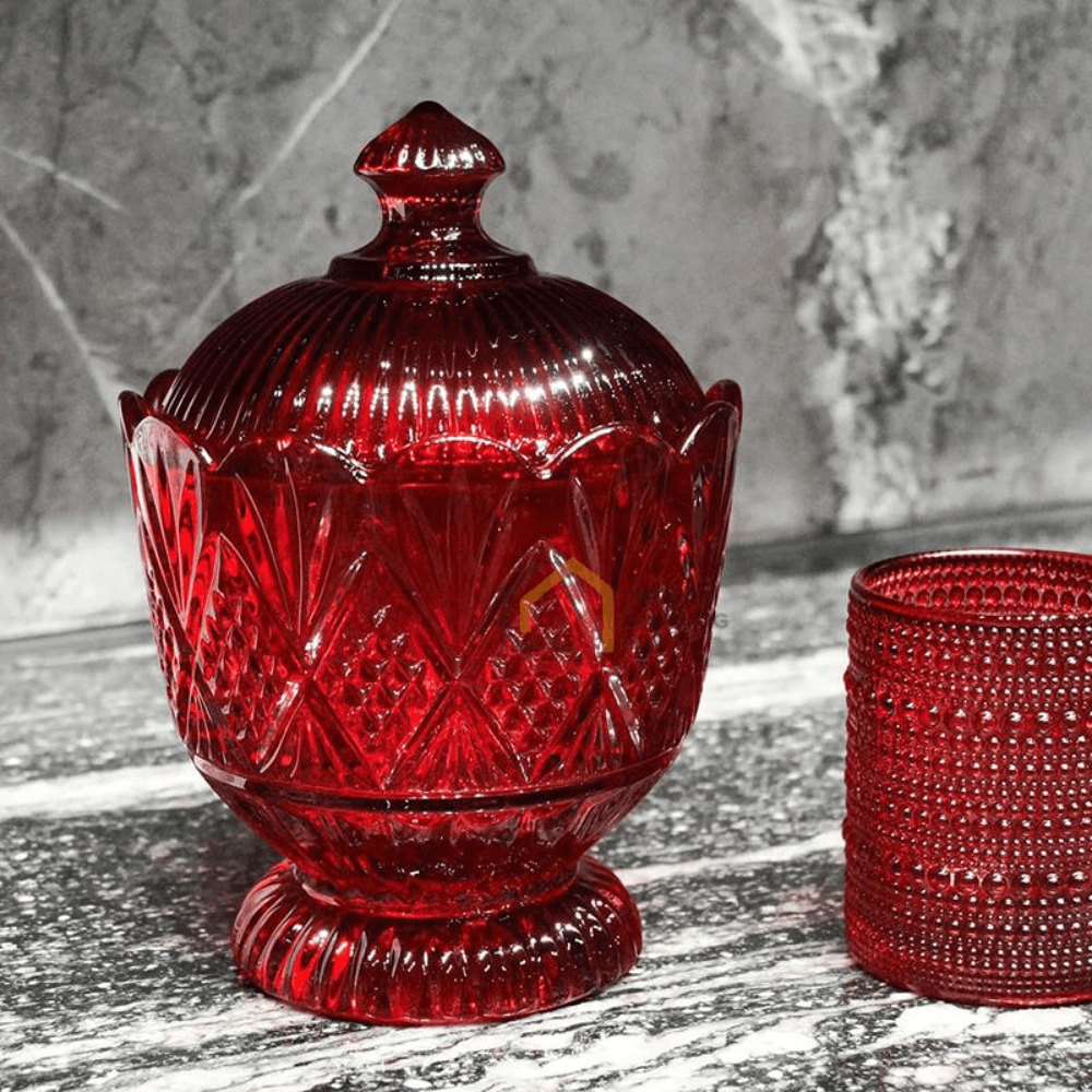 Tô pha lê có nắp Dublin Crystal màu đỏ - Tinh hoa pha lê trong từng chi tiết