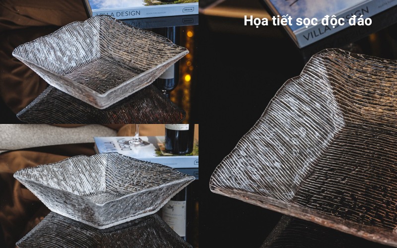 Sản phẩm nổi bật với thiết kế hình vuông, kết hợp với họa tiết sọc chạy dọc bề mặt bên ngoài, tạo nên một vẻ đẹp tinh xảo và lôi cuốn. Những đường nét này mang lại sự mới lạ và tạo nên chiều sâu về thị giác, giúp bàn ăn trở nên sống động và hấp dẫn hơn. Họa tiết này cũng làm nổi bật sự tinh tế trong phong cách thiết kế của IVV, đồng thời tạo sự độc đáo mà khó có sản phẩm nào sánh kịp.