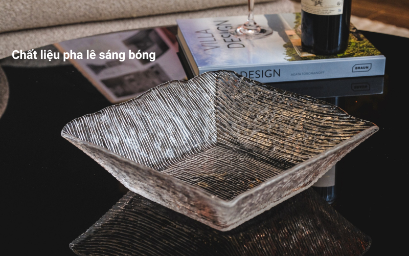 Nhờ sử dụng chất liệu pha lê không chì cao cấp, sản phẩm có khả năng chống trầy xước và mài mòn tốt, giúp duy trì vẻ sáng bóng và tinh xảo theo thời gian. Mỗi chiếc đĩa đều có khả năng chịu được các va chạm nhẹ trong quá trình sử dụng hàng ngày mà không bị hư hỏng hay nứt vỡ như nhiều loại bát đĩa pha lê thông thường khác Dễ dàng vệ sinh mà không lo bị bạc màu hay mất đi độ sáng bóng ban đầu