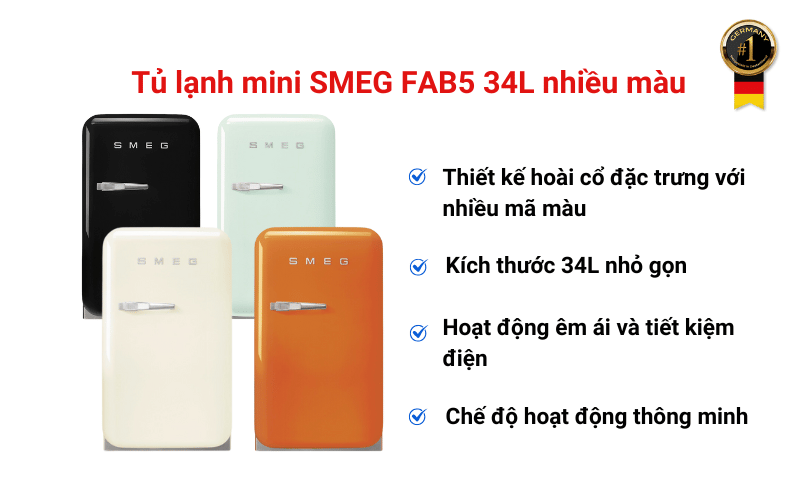 Tủ Lạnh Mini SMEG FAB5 34L - Thiết Kế Retro Sang Trọng, Nhiều Màu
