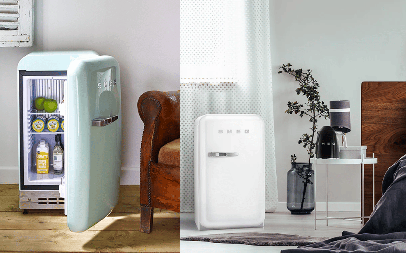 Tủ lạnh mini SMEG FAB5 nổi bật với phong cách Retro đặc trưng – sự kết hợp tinh tế giữa công nghệ hiện đại và thiết kế hoài cổ lấy cảm hứng từ thập niên 1950, thể hiện triết lý “Technology with Style” của Ý.
