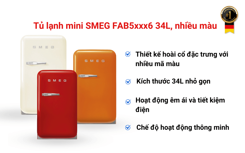 Tủ Lạnh Mini SMEG FAB5 34L - Thiết Kế Retro Sang Trọng, Nhiều Màu