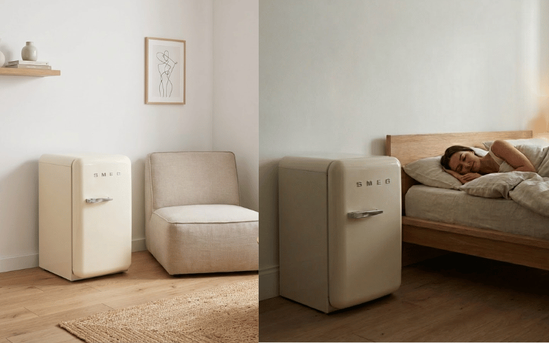 Tủ lạnh mini SMEG FAB5xxx6 34L nổi bật với hoạt động êm ái gần như không gây tiếng ồn, lý tưởng cho phòng ngủ, văn phòng hay khách sạn, mang lại không gian yên tĩnh và thoải mái.