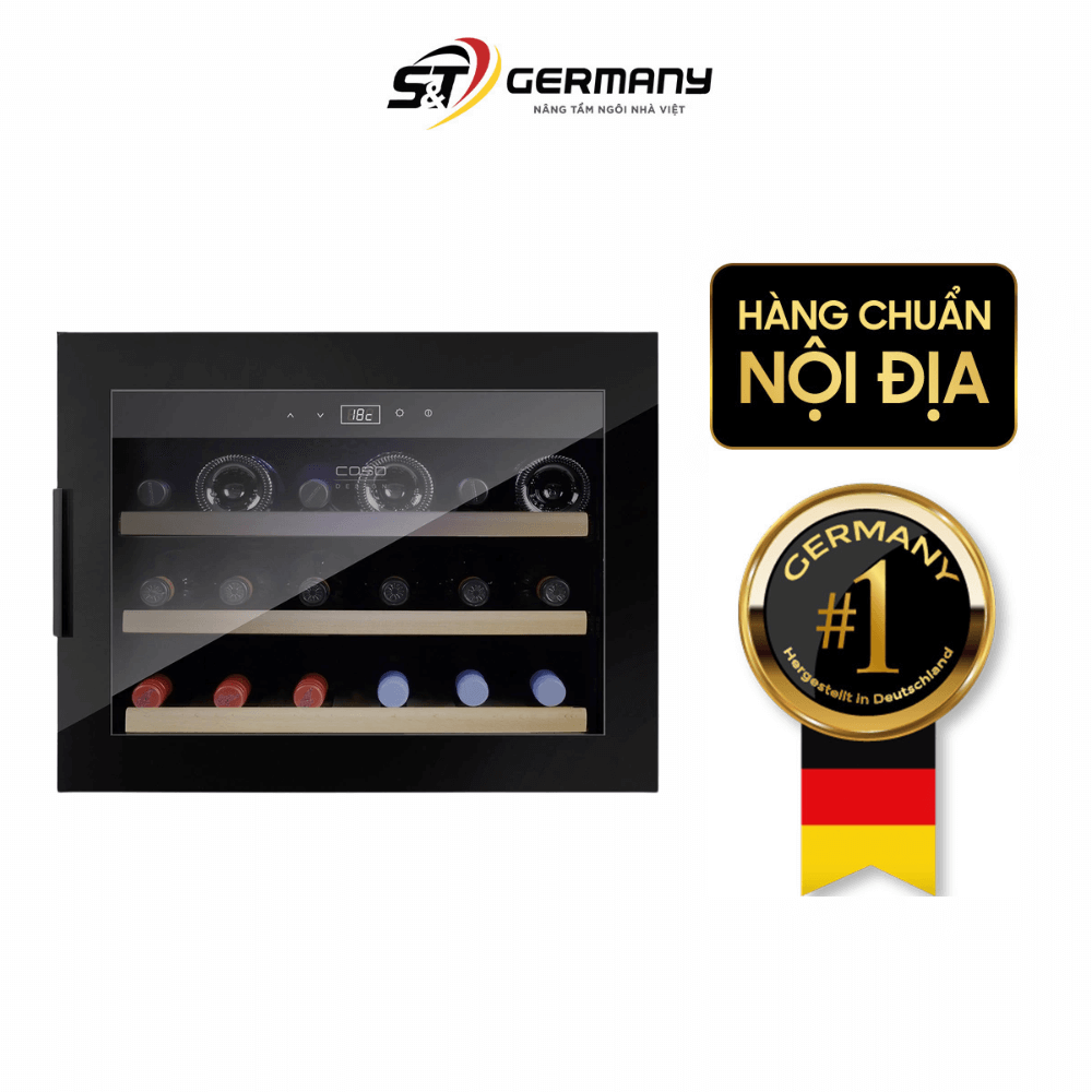 Một chai vang ngon xứng đáng có không gian riêng để chín mùi trọn vẹn. Trong căn bếp hay phòng khách, nhiệt độ, ánh sáng và rung động luôn thay đổi khiến rượu lão hóa sớm, đánh mất tầng hương tinh tế. Giải pháp là một tủ bảo quản âm tủ vận hành êm, ổn định và chống tia UV. Tủ rượu CASO WineSafe 18 EB 627 màu đen tạo môi trường lý tưởng cho 18 chai, giữ nhiệt chuẩn 5–20°C, cách nhiệt vượt trội và chân đế chống rung. Cùng Germany S&T khám phá chi tiết về sản phẩm ngay sau đây!