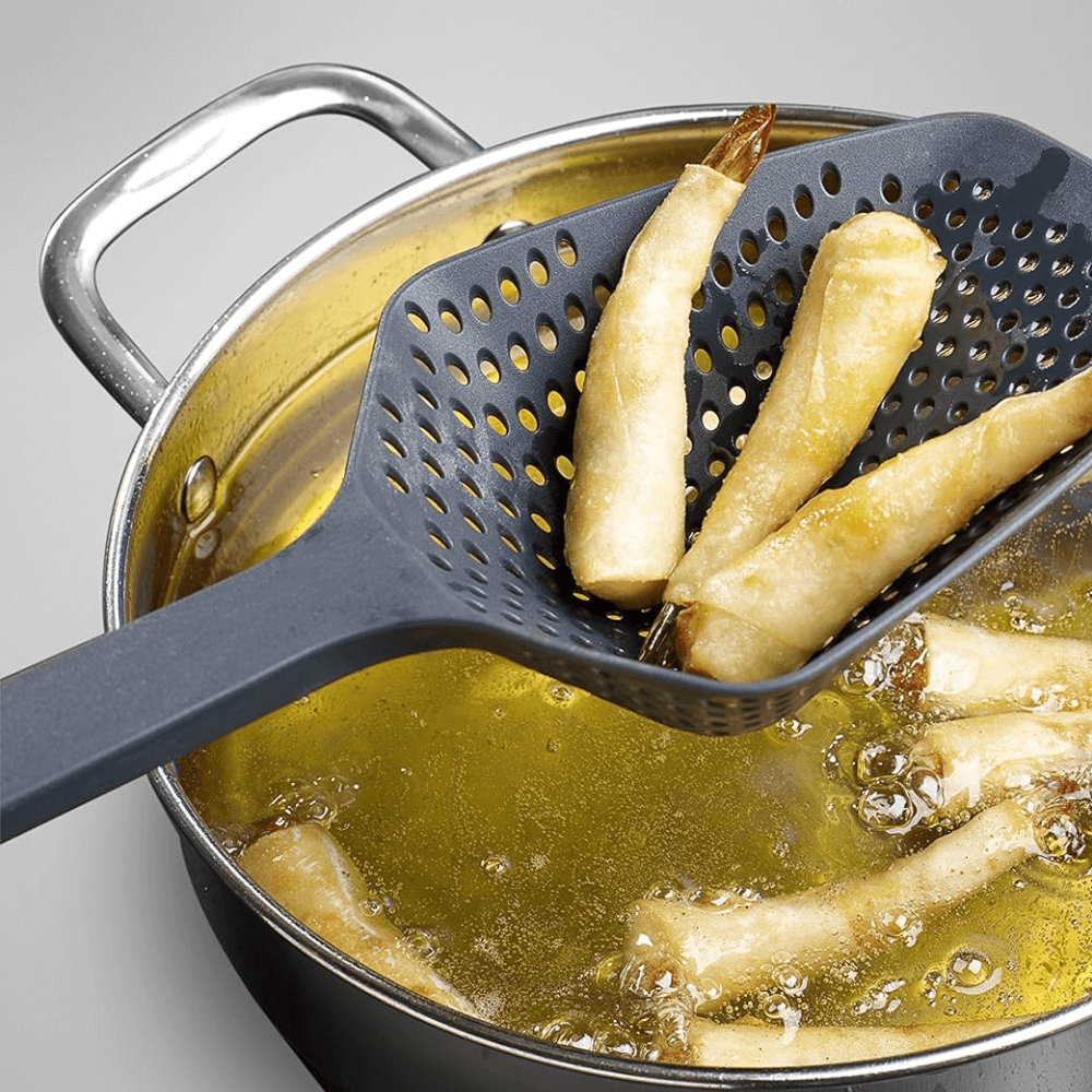 Sản phẩm là trợ thủ nhà bếp lý tưởng, giúp việc vớt, lọc và để ráo thực phẩm trở nên nhanh chóng và tiện lợi hơn. Sản phẩm được làm từ Nylon cứng cao cấp, an toàn khi sử dụng trên các loại nồi chảo có lớp chống dính, không gây trầy xước bề mặt.