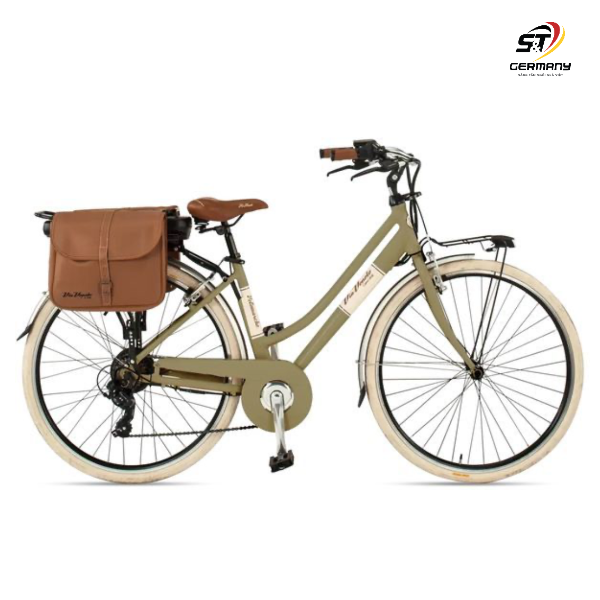 Là dòng xe nội địa cao cấp của Đức, độ bền trên 30 năm, thiết kế và sản xuất tại Ý. Xe đạp nữ phong cách Vintage với chất liệu khung nhôm Wafer siêu nhẹ, dù đi quãng đường dài cũng sẽ là người bạn đồng hành lý tưởng không gây nặng và cản trở. Chất liệu phanh trước và sau bằng nhôm không gỉ chắc chắn đảm bảo an toàn cho người sử dụng. Chất liệu lốp: dạng lốp xe hơi đặc biệt, giúp quãng đường trở nên nhẹ tênh và ngắn hơn. Chất liệu bàn đạp bằng nhựa, yên xe: có đệm