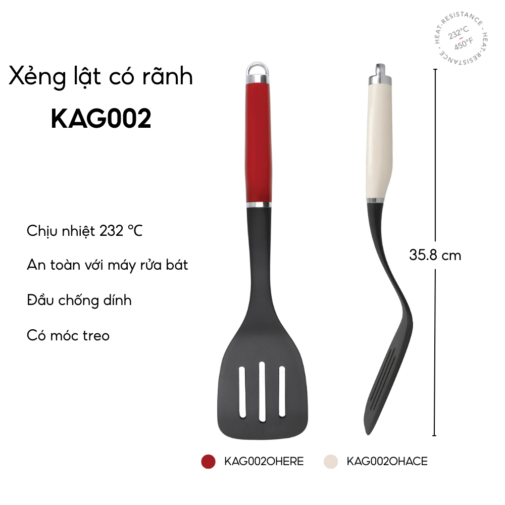 - Xẻng Lật KitchenAid màu Đỏ Empire KAG002OHERE – sắc đỏ biểu trưng cho năng lượng và đam mê nấu nướng.